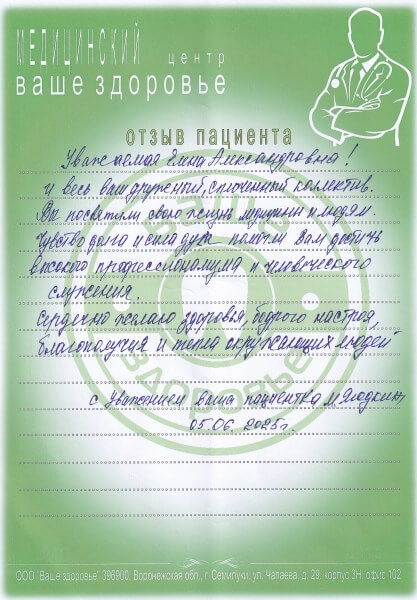 С уважением, ваша пациентка М. Ягодкина.